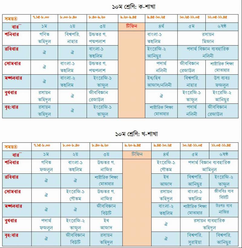 নির্বাচনী পরীক্ষা ও মডেল টেস্ট-২০১৭ এর রুটিন