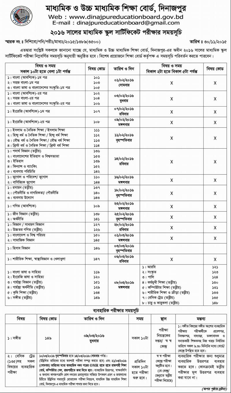 এস.এস.সি পরীক্ষা-২০১৬ এর রুটিন।