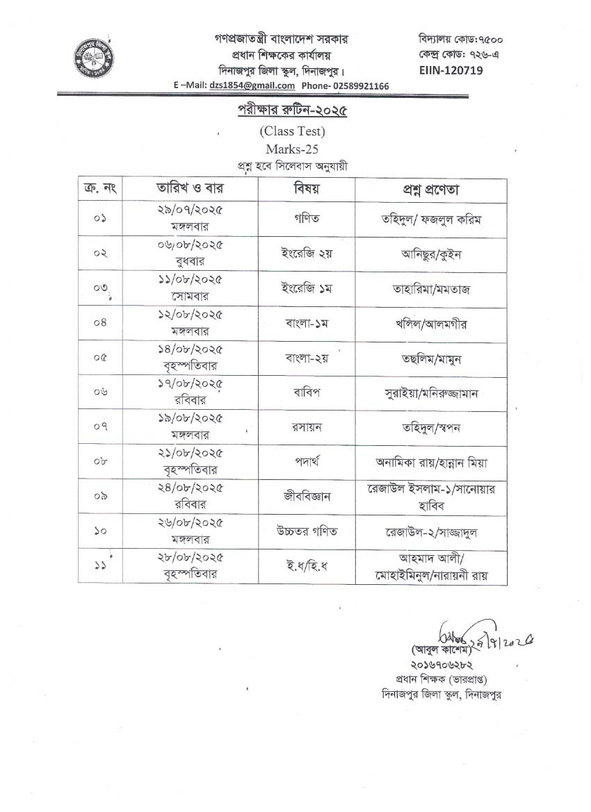 বার্ষিক/নির্বাচনী ব্যবহারিক পরীক্ষার রুটিন -২০২৫
