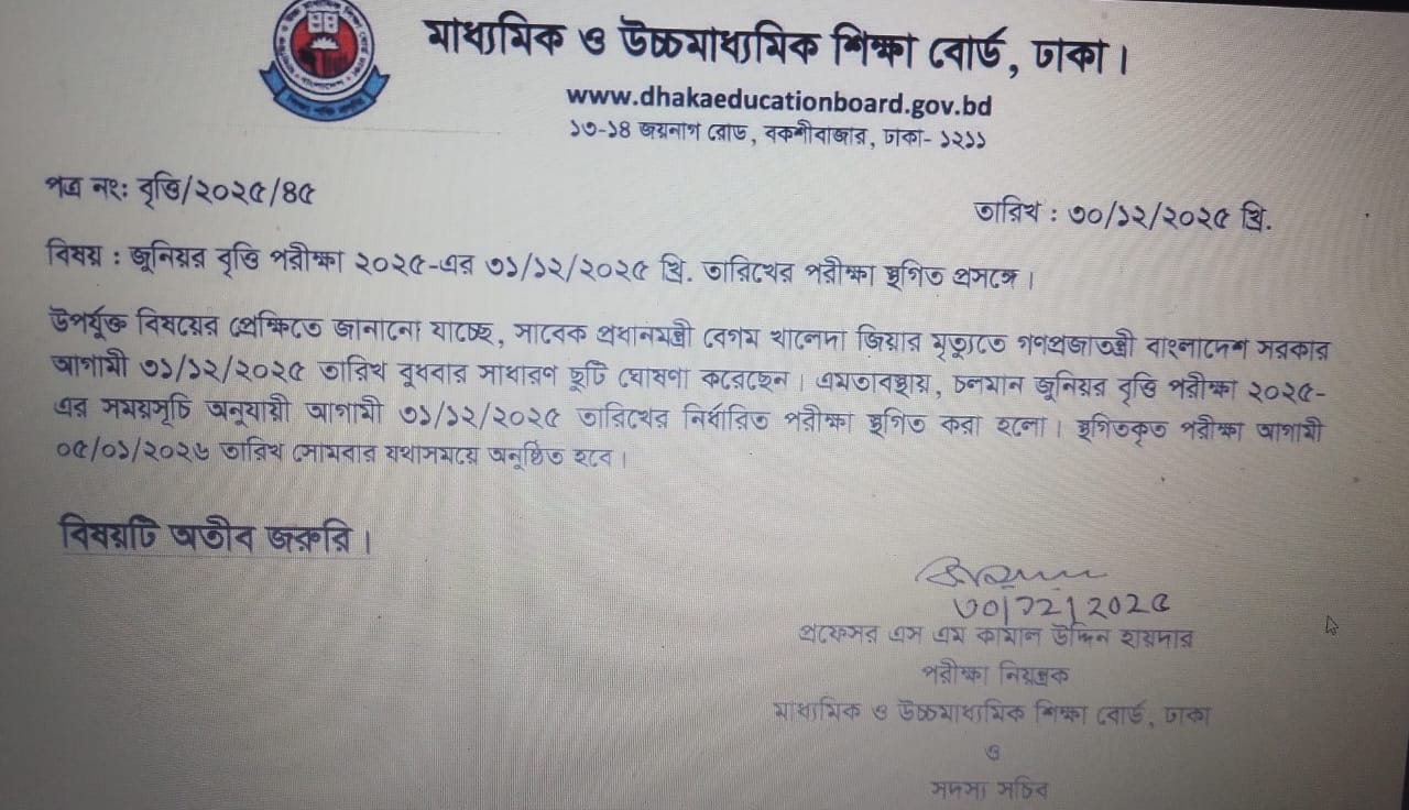 জুনিয়র বৃত্তি পরিীক্ষা ২০২৫ স্থগিত প্রসঙ্গে