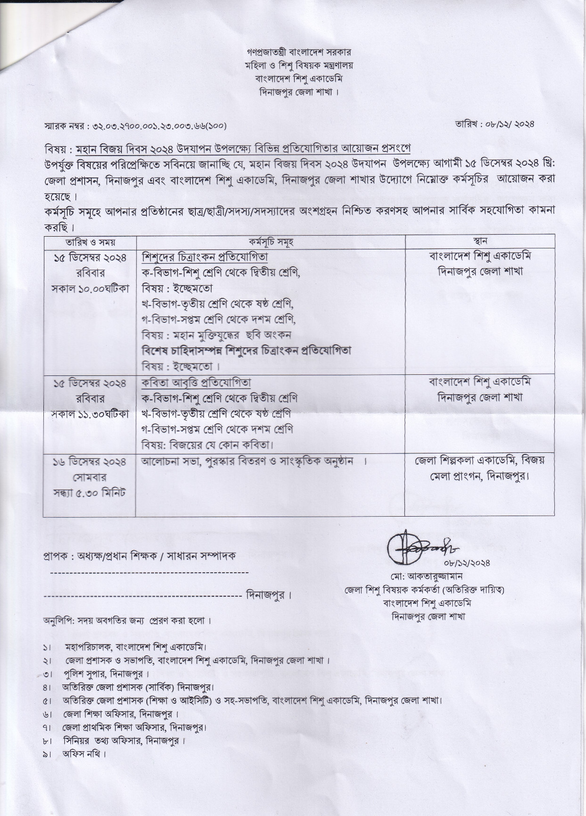 মহান বিজয় দিবস ২০২৪ উদযাপন উপলক্ষ্যে বিভিন্ন প্রতিযোগিতা আয়োজন প্রসংগে।
