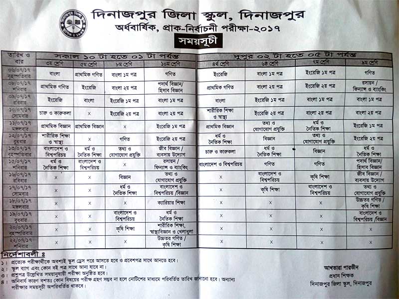 ২০১৭ সালের অর্ধবার্ষিক পরীক্ষার রুটিন